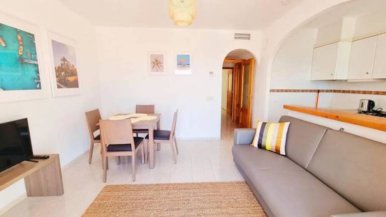 Diese Ferienwohnung beinhaltet eine Terrasse, ein Schlafzimmer, ein Wohnzimmer sowie eine gut ausgestattete Küche, die mit einem Kühlschrank und einem Geschirrspüler ausgestattet ist. Handtücher und Bettwäsche werden bereitgestellt.