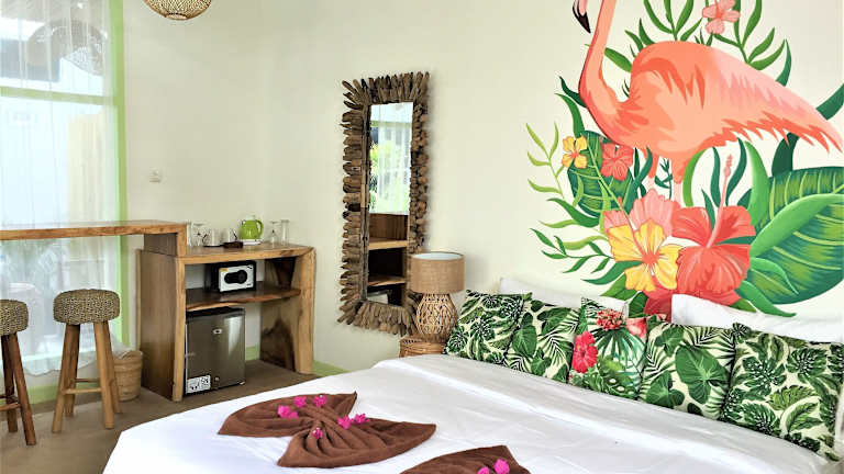 Das Hotel Flamingo bietet Ihnen eine Vielzahl von Möglichkeiten, um Ihre Freizeit zu gestalten. Entspannen Sie am Außenpool oder erkunden Sie den Garten des Hotels. Die 24-Stunden-Rezeption und die Gepäckaufbewahrung sorgen dafür, dass Sie jederzeit den bestmöglichen Service erhalten. Verbringen Sie einen unvergesslichen Aufenthalt im Hotel Flamingo auf Gili Trawangan.