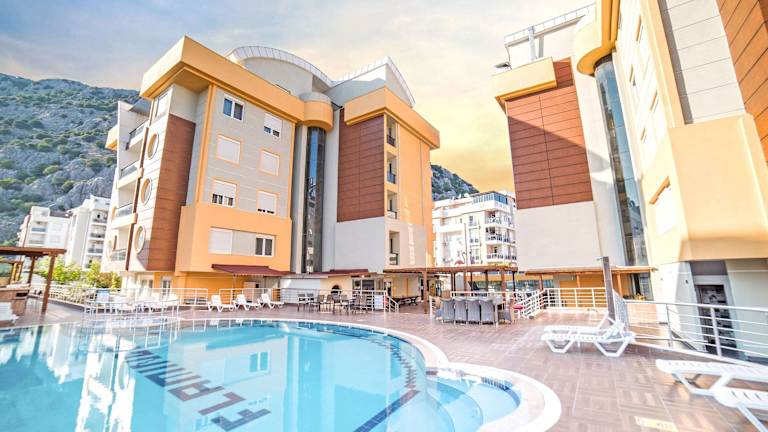 Das Flamingo Residence in Antalya ist die perfekte Unterkunft für Ihren Aufenthalt, nur 2,6 km vom Meer entfernt. Genießen Sie den saisonalen Außenpool und den atemberaubenden Blick auf die Berge. Die Unterkunft bietet kostenfreies WLAN in allen Bereichen und komfortable Apartments mit Essbereich, Sitzbereich und Flachbild-TV. Einige Apartments verfügen über eine Terrasse oder einen Balkon mit Poolblick. Die voll ausgestattete Küche ermöglicht es Ihnen, Ihre eigenen Mahlzeiten zuzubereiten. Das private Badezimmer bietet zusätzlichen Komfort. Handtücher und Bettwäsche werden bereitgestellt. Entspannen Sie auf der Sonnenterrasse oder nutzen Sie den Lebensmittellieferservice der Unterkunft. Lunchpakete sind ebenfalls erhältlich. Der Flughafen Antalya ist nur 19 km entfernt und kostenfreie Privatparkplätze stehen zur Verfügung.