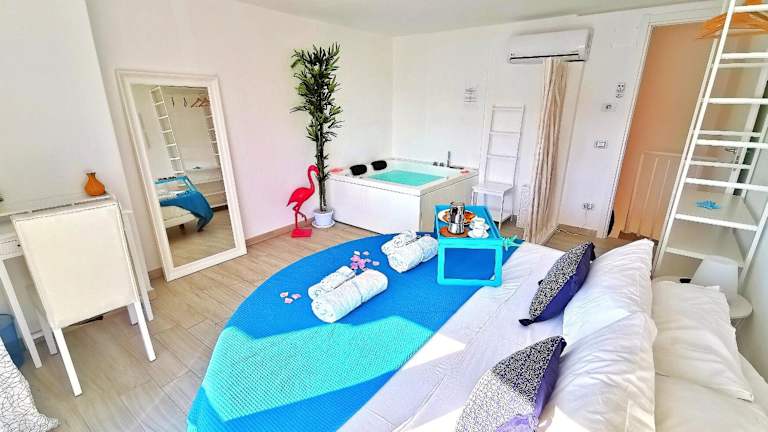 Das Flamingo SPA Loft by Picasa Sicilia - SEASIDE - SEA & ORTIGIA VIEW bietet Übernachtungsmöglichkeiten mit Zugang zu einem Whirlpool und bietet sowohl Stadtblick als auch Meerblick. Zu den angebotenen Annehmlichkeiten gehört kostenloses WLAN.