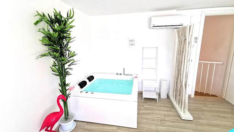 Die Ferienwohnung ist klimatisiert und umfasst 1 Schlafzimmer, ein Wohnzimmer sowie eine voll ausgestattete Küche, die über einen Kühlschrank und eine Kaffeemaschine verfügt. Das Badezimmer ist mit einem Bidet und einer Dusche ausgestattet. Handtücher und Bettwäsche werden bereitgestellt.