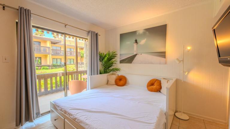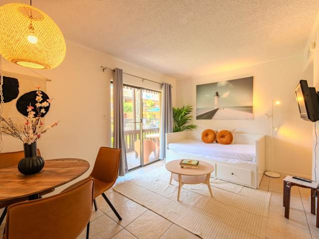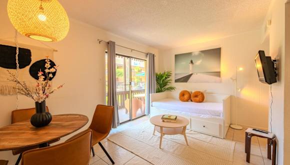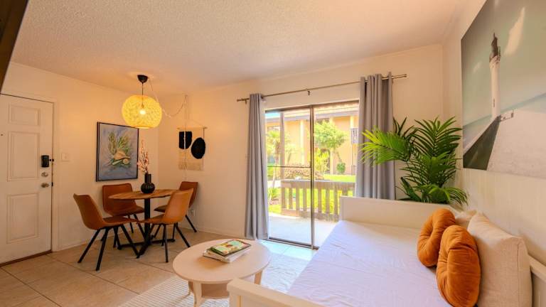 Flamingos Hideaway Stylish 1BR Coastal Escape 155 bietet Übernachtungsmöglichkeiten in einer attraktiven Ferienwohnung mit einem Außenpool und kostenlosem WLAN. Die Unterkunft ist mit einem Schlafzimmer, einem Badezimmer und einem Wohnzimmer ausgestattet.