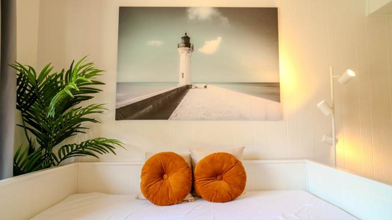 Die Ferienwohnung besteht aus einem separaten Schlafzimmer, einem Badezimmer und einem Wohnzimmer.