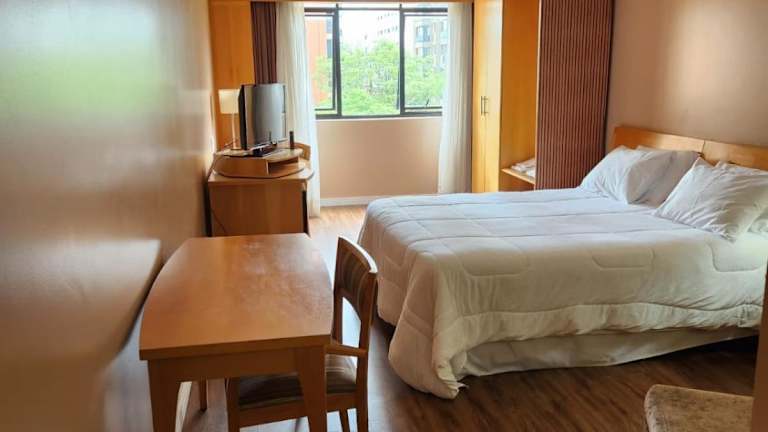 Das Flat em Sol Alphaville Hotel & Residence bietet eine komfortable Unterkunft mit einer Terrasse, einem Außenpool und kostenlosem WLAN. Die Rezeption ist rund um die Uhr besetzt und es steht ein Privatparkplatz zur Verfügung. Für zusätzlichen Komfort sorgt eine Klimaanlage in der Ferienwohnung, die von einem privaten Gastgeber geführt wird.