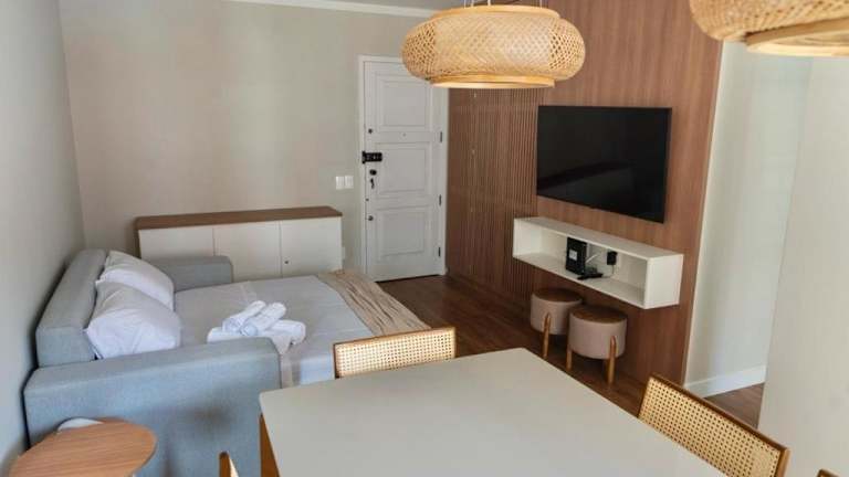 Flat Ipanema ist eine Unterkunft, die Übernachtungsmöglichkeiten bietet und zusätzlich Zugang zu einer Sauna und einem Außenpool ermöglicht. Die Ferienwohnung ist klimatisiert und bietet eine komfortable Ausstattung.