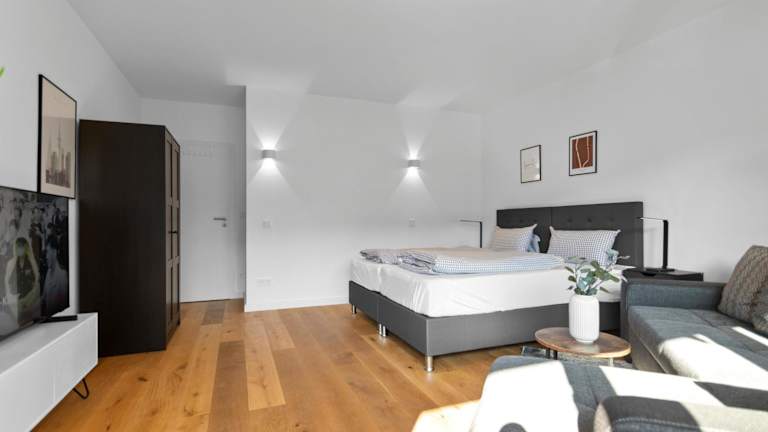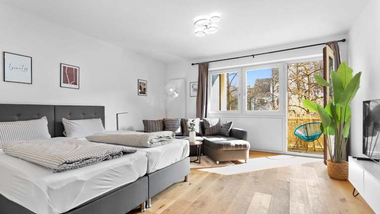 Flatista Homes - Hirschgarten ist eine Ferienwohnung, die über einen Balkon, einen Garten und eine Terrasse verfügt. Die Unterkunft bietet zudem kostenloses WLAN in allen Bereichen.
