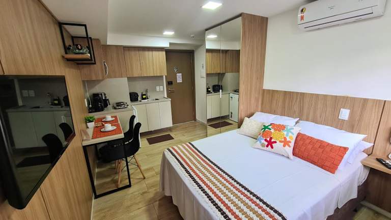 Das Flat Cabo Branco 150m mar ist eine ideale Unterkunft für Reisende, die João Pessoa erkunden möchten. Das klimatisierte Apartment bietet ein separates Schlafzimmer, eine voll ausgestattete Küche und ein Badezimmer. Handtücher und Bettwäsche werden gestellt. Die Lage des Apartments ist günstig, da der Strand Cabo Branco nur 400 m entfernt liegt. Andere Strände wie Tambau und Manaira sind ebenfalls in der Nähe. Der Flughafen Presidente Castro Pinto ist nur 18 km entfernt.
