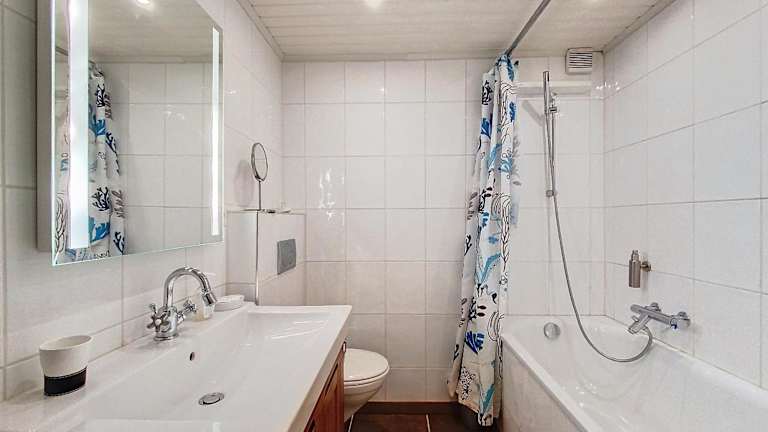 Die Ferienwohnung umfasst 3 Schlafzimmer, eine voll ausgestattete Küche mit Kühlschrank und Geschirrspüler sowie 2 Badezimmer mit Dusche, Haartrockner und Waschmaschine. Handtücher und Bettwäsche werden bereitgestellt.