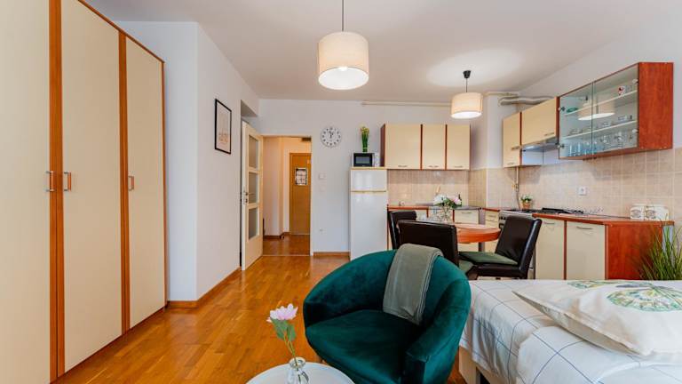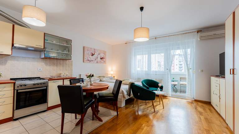 Flex SelfCheckIns 141 - Zagreb - Studio Apartment - Loggia bietet klimatisierte Übernachtungsmöglichkeiten mit einem Balkon und kostenfreiem WLAN. Die Unterkunft ist für Gäste ab einem Mindestalter von 18 Jahren vorgesehen und Haustiere sind nicht gestattet. In dieser Nichtraucherunterkunft sind sowohl öffentliche als auch private Bereiche rauchfrei. Ein Kontaktloser Check-in/Check-out sowie eine Autovermietung sind ebenfalls verfügbar.