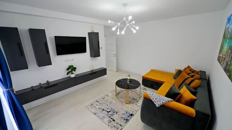 Das FLH - Just 5 ist eine gemütliche Unterkunft in Şelimbăr, nur wenige Kilometer von den beliebten Sehenswürdigkeiten von Sibiu entfernt. Das klimatisierte Apartment bietet kostenfreies WLAN, einen Garten und Privatparkplätze. Die Unterkunft ist ideal für Reisende, die eine komfortable und gut ausgestattete Unterkunft suchen, um die Umgebung zu erkunden.