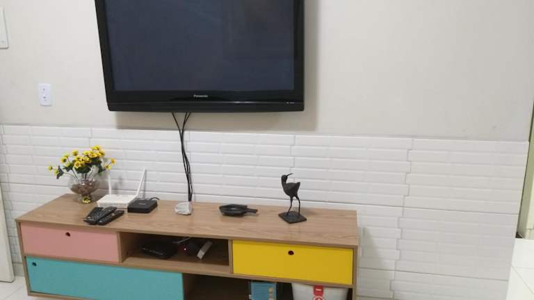 Das klimatisierte Ferienhaus im Flat Flor de Peroba -1-Maragogi-AL qualidade 5 estrela verfügt über 2 gemütliche Schlafzimmer, ein geräumiges Wohnzimmer und eine voll ausgestattete Küche. Hier finden Sie alles, was Sie für einen komfortablen Aufenthalt benötigen, einschließlich eines Kühlschranks und einer Dusche im Badezimmer. Handtücher und Bettwäsche werden Ihnen zur Verfügung gestellt, damit Sie sich wie zu Hause fühlen können.