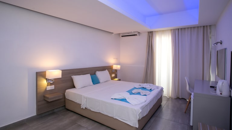 Die Zimmer im Flora Maria Hotel sind komfortabel eingerichtet und verfügen über eine Klimaanlage, eine Kochnische, einen Fernseher und kostenfreies WLAN. Ein Balkon oder eine Terrasse bietet Ihnen zusätzlichen Platz zum Entspannen. Die Badezimmer sind mit einer Dusche ausgestattet.