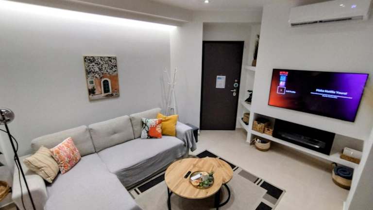 Die Ferienwohnung ist klimatisiert und umfasst zwei Schlafzimmer, ein Wohnzimmer, eine voll ausgestattete Küche mit Kühlschrank und Kaffeemaschine sowie ein Badezimmer mit Badewanne oder Dusche und Haartrockner. Handtücher und Bettwäsche werden bereitgestellt. In der Unterkunft sind Babybetten für Gäste von 0 bis 2 Jahren verfügbar. Es sind Nichtraucherzimmer und Familienzimmer vorhanden.