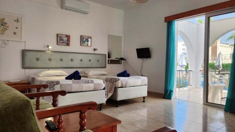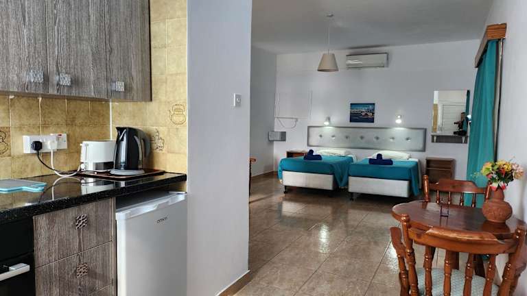 Das Florence Hotel Apartments befindet sich in unmittelbarer Nähe zum Strand Sandy Bay und nur 500 m vom Nissi Beach entfernt, in einer lebhaften Umgebung. Ausgedehnte Restaurants, Bars und Cafés sind in der 2 km entfernten Stadt Ayia Napa zu finden. Der internationale Flughafen Larnaca liegt 56 km vom Hotel entfernt.