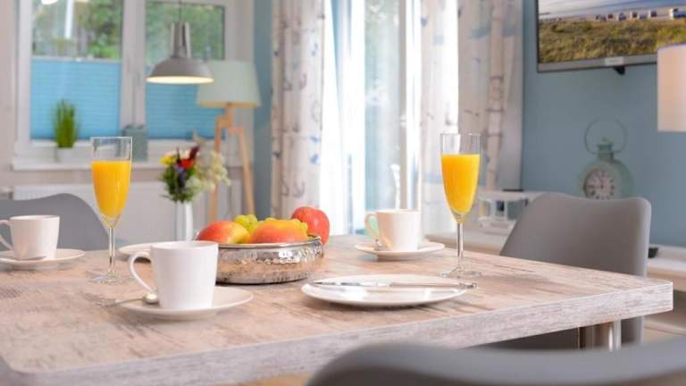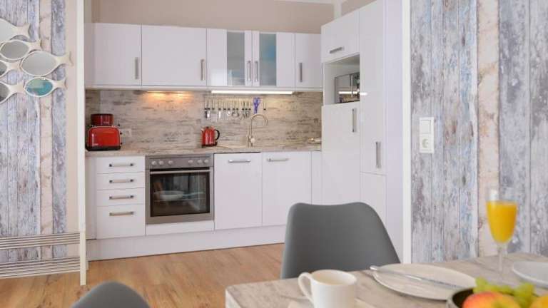 Die Ferienwohnung verfügt über ein Schlafzimmer, einen Flachbild-TV sowie eine gut ausgestattete Küchenzeile mit Geschirrspüler und Mikrowelle. Das Badezimmer ist mit einer Dusche ausgestattet.