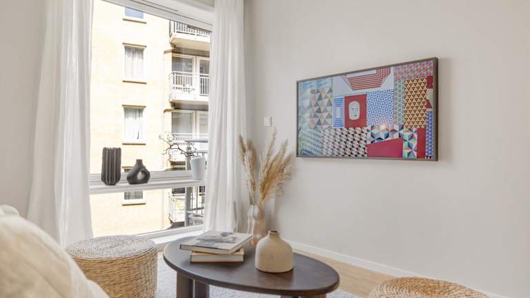Die Wohnung verfügt über 2 Schlafzimmer, ein Wohnzimmer mit Flachbild-TV und eine gut ausgestattete Küche, die mit einem Kühlschrank und einem Geschirrspüler ausgestattet ist. Das Badezimmer beinhaltet eine Dusche, und Handtücher sowie Bettwäsche werden bereitgestellt.