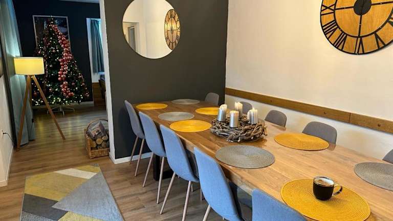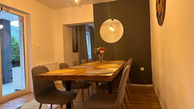 Flow House bietet Übernachtungsmöglichkeiten in einer Villa mit Garten, Gemeinschaftslounge und Terrasse. Diese Villa zeichnet sich durch kostenfreies WLAN und Poolblick aus und verfügt über einen kostenlosen Privatparkplatz. Die Unterkunft umfasst eine Küche sowie ein Wohnzimmer mit Sitz- und Essbereich.