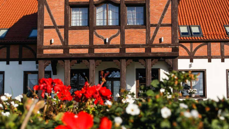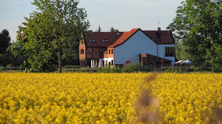 Das Hotel Folwark Żuławski liegt in einer ruhigen Gegend am Stadtrand von Elbląg, umgeben von Blumenfeldern. Es ist der perfekte Ort, um sich zu entspannen und die Natur zu genießen. Das historische Zentrum von Elbląg ist nur 6 km entfernt und bietet viele Sehenswürdigkeiten und Aktivitäten. Der Oberländische Kanal, der Drausensee und der Bahnhof Elbląg sind ebenfalls in kurzer Entfernung vom Hotel zu erreichen.