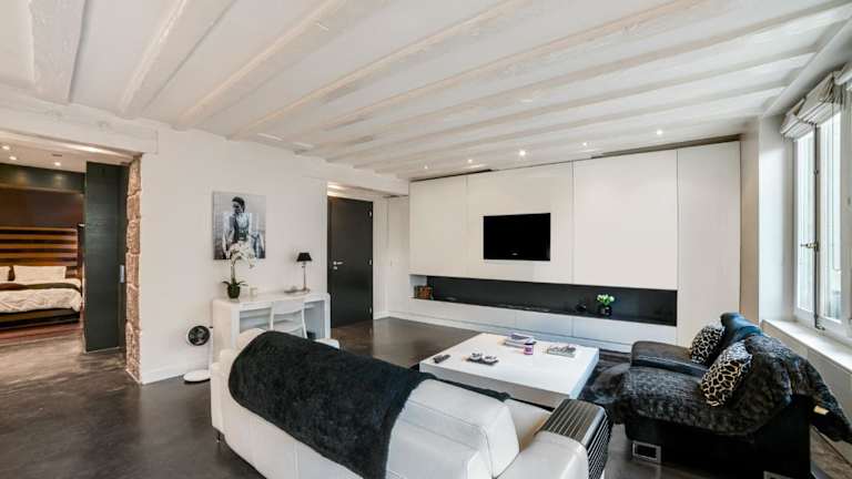 Das Apartment im Hotel Fontaine verfügt über ein gemütliches Schlafzimmer, ein geräumiges Wohnzimmer und eine voll ausgestattete Küche. Die moderne Einrichtung und die großen Fenster sorgen für eine helle und einladende Atmosphäre. Die Küche ist mit einem Kühlschrank und einer Kaffeemaschine ausgestattet, so dass Sie Ihre Mahlzeiten bequem zubereiten können. Das Badezimmer verfügt über eine Dusche und kostenlose Pflegeprodukte. Handtücher und Bettwäsche werden gestellt, um Ihnen einen angenehmen Aufenthalt zu ermöglichen.
