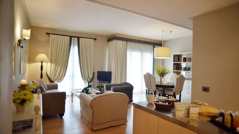 Die Designapartments im Hotel Fonteliving sind geräumig und elegant eingerichtet. Jedes Apartment verfügt über eine voll ausgestattete Küche, einen LCD-Sat-TV und kostenfreies WLAN. Die klimatisierten Apartments bieten zudem einen möblierten Balkon oder eine Terrasse, auf der Sie die schöne Aussicht auf die umliegende Landschaft genießen können.