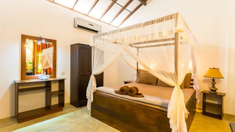 Die klimatisierten Cabanas im Forcus Cabanas sind komfortabel und gemütlich eingerichtet. Jede Cabana verfügt über einen eigenen Eingang, Fliesenböden, einen Kleiderständer, eine Sitzecke, ein Himmelbett und ein Moskitonetz. Das eigene Badezimmer ist mit einer Dusche, Handtüchern und kostenfreien Pflegeprodukten ausgestattet.