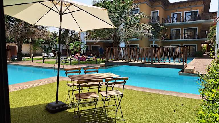 Die Forest View Apartments in Kololi bieten komfortable Unterkünfte mit allen Annehmlichkeiten, die Sie für einen angenehmen Aufenthalt benötigen. Genießen Sie den Außenpool, den Garten und die Sonnenterrasse sowie die Nähe zu den beliebten Stränden Senegambia, Bijilo und Kololi. Der internationale Flughafen Banjul ist ebenfalls gut erreichbar.