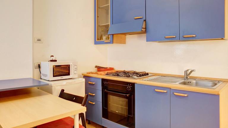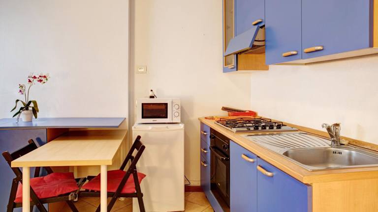 Die Ferienwohnung verfügt über 1 Schlafzimmer, eine Küche mit Kühlschrank und Ofen sowie 1 Badezimmer mit Dusche. Kostenlosen Pflegeprodukten und eine Waschmaschine sind ebenfalls vorhanden. Handtücher und Bettwäsche werden bereitgestellt.