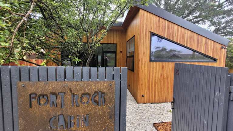Das Fort Rock Cabin verfügt über ein charmantes Chalet im Erdgeschoss mit 2 Schlafzimmern. Das Chalet bietet eine gut ausgestattete Küche mit einem Kühlschrank und einem Geschirrspüler, in der Sie Ihre eigenen Mahlzeiten zubereiten können. Das gemütliche Wohnzimmer lädt zum Entspannen ein und ein Flachbild-TV sorgt für Unterhaltung. Handtücher und Bettwäsche werden im Chalet gestellt, so dass Sie sich um nichts kümmern müssen.