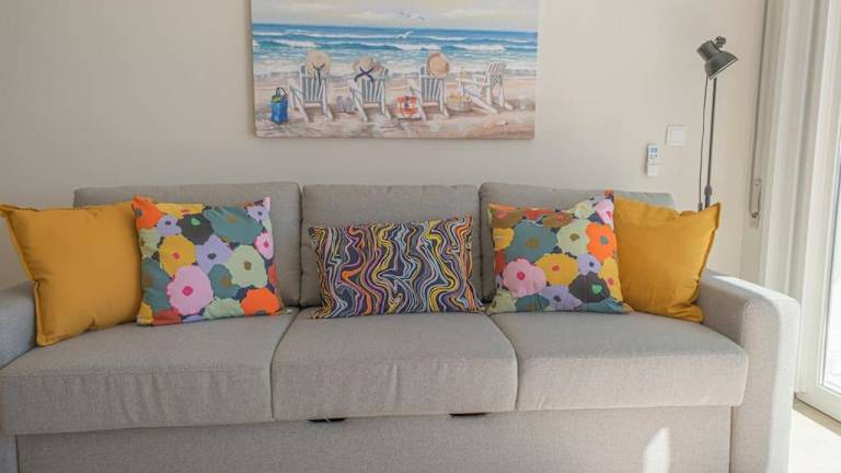 Die Ferienwohnung verfügt über 2 Schlafzimmer und 1 Badezimmer. Zur Ausstattung gehören Bettwäsche, Handtücher, ein Flachbild-TV mit Kabelkanälen, ein Essbereich und eine voll ausgestattete Küchenzeile. Ein Balkon mit Meerblick ist ebenfalls vorhanden.