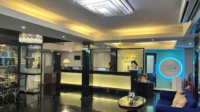 Das Fortuna Hotel liegt im zentralen Sukhumvit-Viertel in Bangkok und ist nur wenige Gehminuten vom Nachtbasar Nana entfernt. Diese zentrale Lage bietet Ihnen eine Vielzahl von Einkaufs-, Unterhaltungs- und Restaurantmöglichkeiten in unmittelbarer Nähe. Die BTS-Skytrain-Station Nana ist ebenfalls nur 5 Gehminuten entfernt, was es Ihnen ermöglicht, bequem die Stadt und ihre Sehenswürdigkeiten zu erkunden.