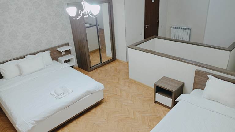 Das Hotel Four Brothers befindet sich im Stadtteil Avlabari in Tiflis, nur 1 km vom Platz der Freiheit entfernt. Die zentrale Lage ermöglicht es den Gästen, die Sehenswürdigkeiten und Attraktionen der Stadt bequem zu erkunden. In der Umgebung finden Sie verschiedene Restaurants, Bars und Einkaufsmöglichkeiten. Der nächstgelegene internationale Flughafen Tiflis ist 14 km entfernt.