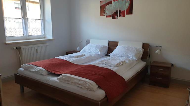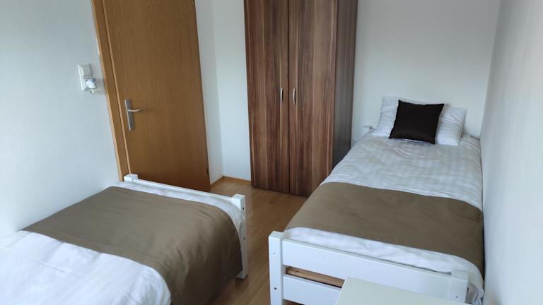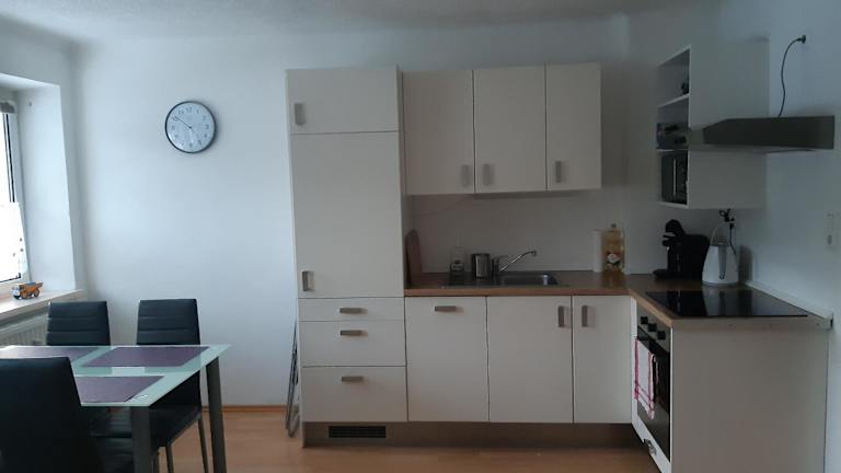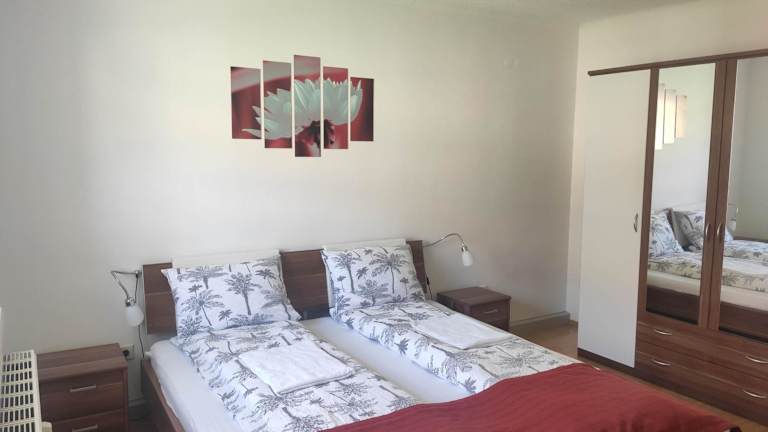 Die Ferienwohnung umfasst zwei Schlafzimmer, ein Wohnzimmer, eine vollständig ausgestattete Küche mit Kühlschrank und Kaffeemaschine sowie ein Badezimmer mit Dusche und Haartrockner. Handtücher und Bettwäsche werden bereitgestellt.