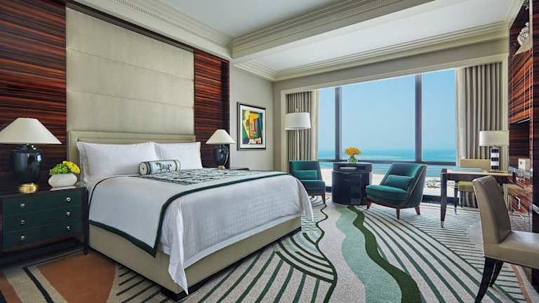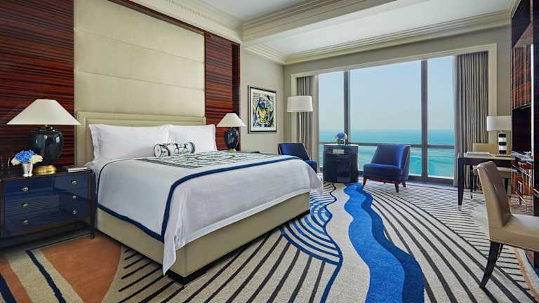 Die Zimmer im Four Seasons Hotel Bahrain Bay sind elegant eingerichtet und bieten einen herrlichen Blick auf den Arabischen Golf. Die Suiten verfügen über ein separates Wohnzimmer mit einem Flachbild-TV, einer iPod-Dockingstation und einem Blu-ray-Player. Das Marmorbad ist mit einer Dusche, einer Badewanne und kostenfreien Pflegeprodukten ausgestattet. WLAN ist in allen Zimmern kostenlos verfügbar.