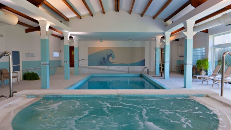 Das Hotel bietet sowohl Innen- als auch Außenpools, die für Aquatraining und Erholung genutzt werden können. Ein Fitnessraum steht kostenfrei zur Verfügung, und es werden Aktivitäten wie Radfahren/Mountainbiking, Wandern und Hydrotherapie-Anwendungen angeboten. Der Wellnessbereich umfasst einen Whirlpool sowie eine Sauna, und für Kinder gibt es ein Spiele- und Unterhaltungsprogramm.