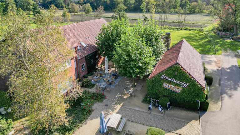 Im Franciscushof können Sie in der gemütlichen Bar entspannen und sich mit erfrischenden Getränken verwöhnen lassen. Wenn Sie lieber selbst kochen möchten, steht Ihnen die gut ausgestattete Küche im Ferienhaus zur Verfügung.