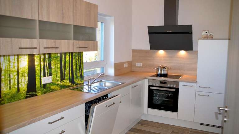 Die Unterkunft ist mit einer voll ausgestatteten Küche ausgestattet, die über einen Kühlschrank, einen Geschirrspüler, einen Ofen, eine Herdplatte, einen Toaster, eine Kaffeemaschine und einen Wasserkocher verfügt, was eine selbständige Verpflegung ermöglicht.