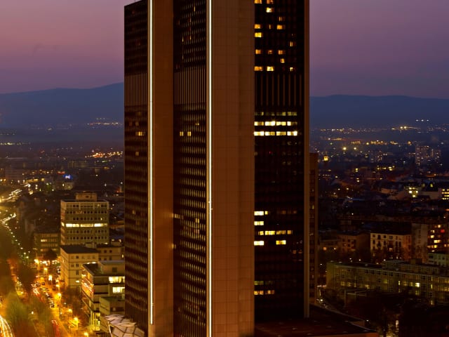 593 elegante Gästezimmer und Suiten sorgen durch modernsten Komfort für Kreativität und Entspannung in elegantem Ambiente. Alle Zimmer befinden sich zwischen den Stockwerken 26 und 44 und bieten dadurch einen atemberaubenden Ausblick auf die Stadt Frankfurt und ihre Umgebung.