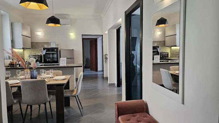 Die Ferienwohnung verfügt über 3 Schlafzimmer, ein Wohnzimmer und eine voll ausgestattete Küche, die mit einem Kühlschrank und einer Kaffeemaschine ausgestattet ist. Es gibt 2 Badezimmer mit einem Bidet und einer Dusche. Zusätzlich werden Handtücher und Bettwäsche zur Verfügung gestellt.
