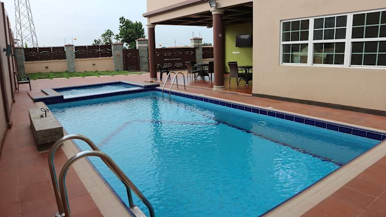 Das Hotel Frederick's Lodge in Kumasi bietet seinen Gästen einen angenehmen Aufenthalt mit einer Vielzahl von Annehmlichkeiten. Genießen Sie den Außenpool, das Fitnesscenter und die Terrasse. Das Restaurant serviert köstliche afrikanische und amerikanische Gerichte, während Sie an der Bar einen erfrischenden Cocktail genießen können. Die klimatisierten Zimmer sind komfortabel eingerichtet und verfügen über moderne Annehmlichkeiten. Das freundliche Personal steht Ihnen rund um die Uhr zur Verfügung. Das Hotel liegt in der Nähe von Sehenswürdigkeiten wie dem Stadion Baba Yara und dem Manhyia Palace.