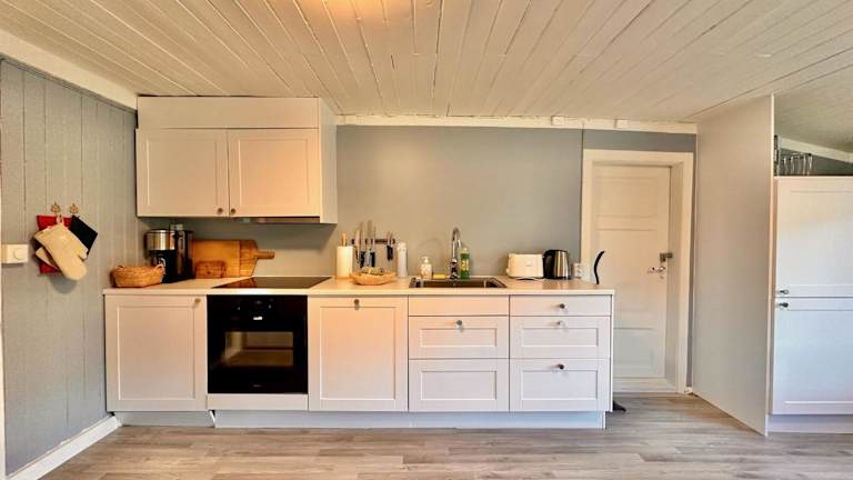Das Ferienhaus umfasst 5 Schlafzimmer, ein Wohnzimmer und eine voll ausgestattete Küche mit Kühlschrank und Kaffeemaschine. Zur Ausstattung gehören außerdem ein Badezimmer mit Dusche und Haartrockner. Handtücher und Bettwäsche werden bereitgestellt.