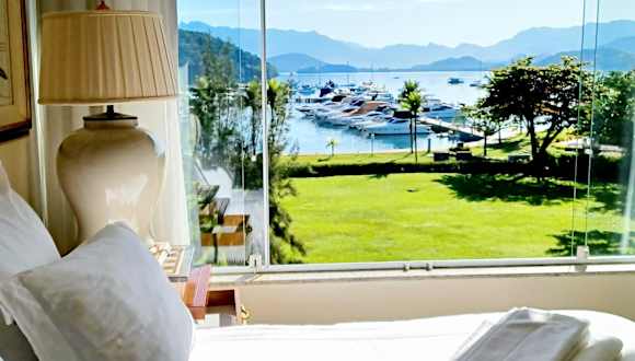 Das Frente & Vista do Mar - Fasano Area in Porto Frade - Angra dos Reis, RJ bietet eine komfortable Unterkunft mit einem atemberaubenden Meerblick. Hier können Sie sich in einem klimatisierten Apartment mit zwei Schlafzimmern, einer voll ausgestatteten Küche und zwei Badezimmern entspannen. Das Hotel verfügt außerdem über Annehmlichkeiten wie einen Garten, eine Terrasse, eine Sauna und einen eigenen Strandbereich. Genießen Sie die Freiheit, Fahrräder auszuleihen und die Umgebung auf zwei Rädern zu erkunden.