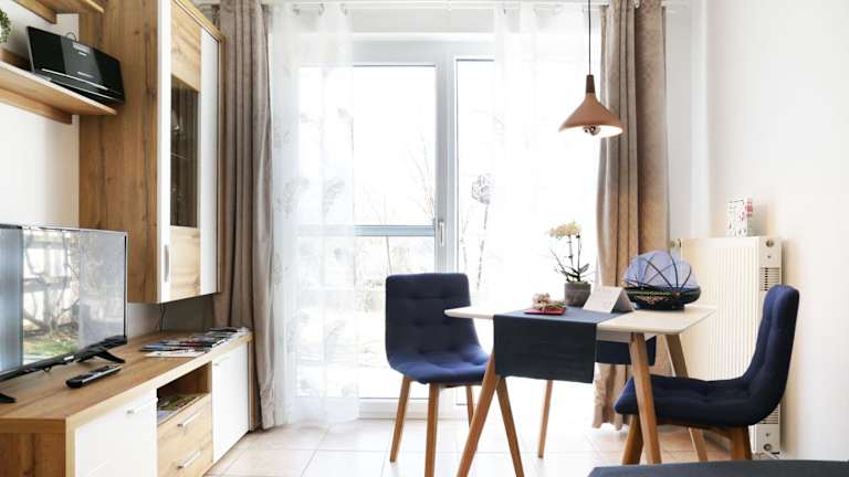 Die Zimmer sind mit einem Sitzbereich, einem Satelliten-Flachbild-TV und einer voll ausgestatteten Küche ausgestattet, die unter anderem einen Kühlschrank, Geschirrspüler, Ofen, Herdplatte, Kaffeemaschine und Wasserkocher beinhaltet. Außerdem gibt es ein eigenes Badezimmer mit einer Badewanne und kostenlosen Pflegeprodukten.