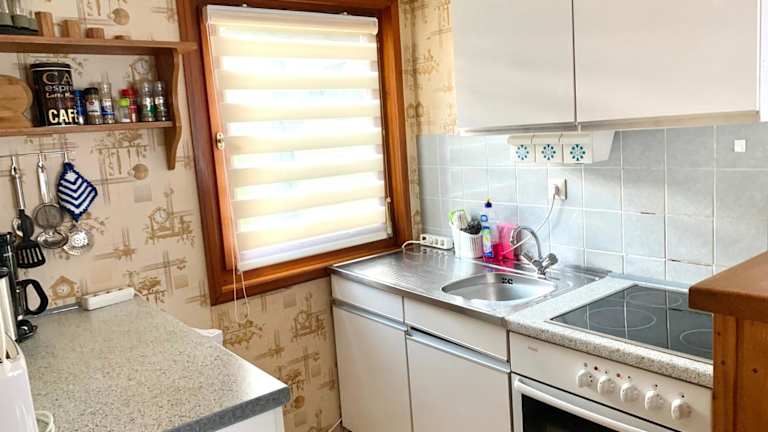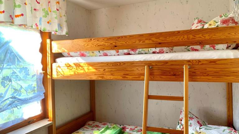 Das Ferienhaus verfügt über zwei Schlafzimmer und eine Küchenzeile, die eingerichtet ist mit einem Kühlschrank, einem Ofen sowie einer Kaffeemaschine. Handtücher und Bettwäsche werden in der Unterkunft bereitgestellt.