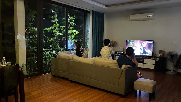 Die Friendly villa SH Đại Lải bietet eine Unterkunft mit 4 Schlafzimmern, einem Wohnzimmer, einer voll ausgestatteten Küche sowie 5 Badezimmern. Es handelt sich um eine 4-stöckige Villa mit Balkon, Gemeinschaftslounge und Terrasse. Kostenloses WLAN und Gartenblick sind ebenfalls verfügbar. Die Unterkunft wird von einem privaten Gastgeber geführt und erfordert ein Mindestalter von 18 Jahren für den Check-in.