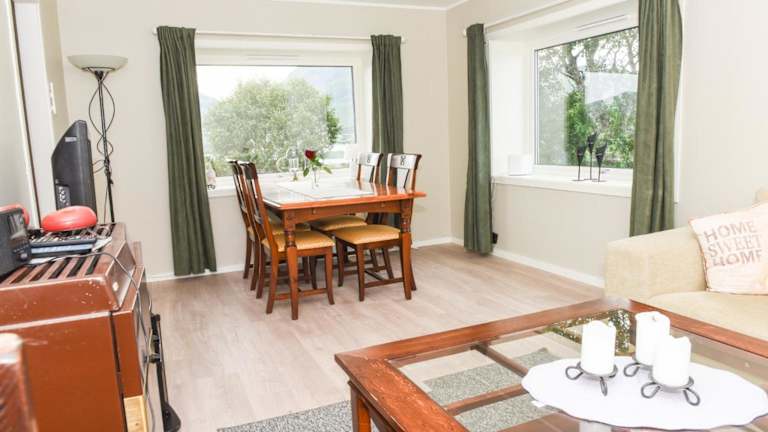 Das Frittliggende hjem med nydelig utsikt bietet einen Balkon, einen kostenlosen Privatparkplatz und kostenfreies WLAN. Die Unterkunft ist ein Ferienhaus, das eine Terrasse mit Blick auf die Berge umfasst und über 3 Schlafzimmer sowie ein Wohnzimmer verfügt.