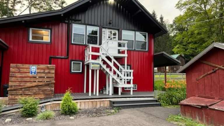 Das Froggy Goggle Barn in Marathon, New York, bietet komfortable Unterkünfte mit kostenfreien Privatparkplätzen. Die Zimmer sind gut ausgestattet und verfügen über ein eigenes Bad, eine Klimaanlage, einen Flachbild-TV, einen Kühlschrank, eine Mikrowelle und eine Kaffeemaschine. Das Apartment bietet zudem einen Grill und in der Umgebung können Sie verschiedene Outdoor-Aktivitäten wie Skifahren und Angeln genießen. Die Nähe zur Cornell University und dem Ithaca College macht das Froggy Goggle Barn zu einer idealen Wahl für Besucher dieser Bildungseinrichtungen.