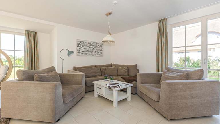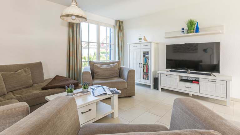 Das Ferienhaus umfasst 3 Schlafzimmer, 2 Badezimmer, ein Wohnzimmer mit Sitz- und Essbereich sowie eine voll ausgestattete Küche mit Kühlschrank, Geschirrspüler und Ofen. Zur Ausstattung gehören ein Blu-ray-Player, ein Flachbild-TV mit Satellitenkanälen, eine Spielekonsole (Nintendo Wii), ein DVD-Player, ein CD-Player sowie eine Kaffeemaschine.