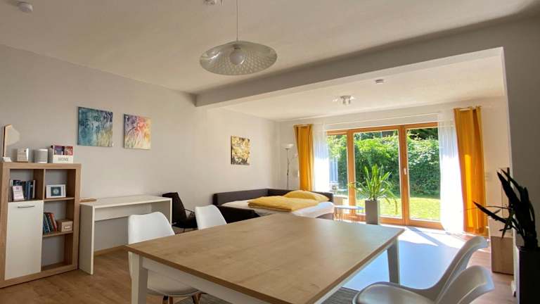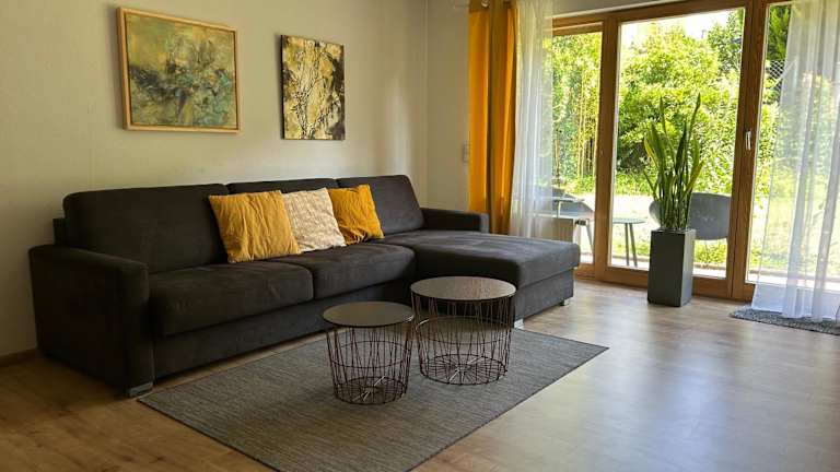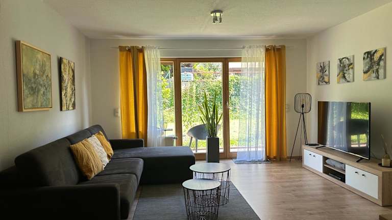 Das Apartment im Fuchsbau-Goldbach bietet Ihnen ein komfortables und gemütliches Ambiente. Es verfügt über einen Balkon, von dem aus Sie den Blick auf den Garten genießen können. Das Apartment verfügt über 2 Schlafzimmer, ein geräumiges Wohnzimmer mit Flachbild-TV, eine voll ausgestattete Küche mit Kühlschrank und Geschirrspüler sowie ein Badezimmer mit Dusche. Handtücher und Bettwäsche werden gestellt, so dass Sie sich um nichts kümmern müssen.