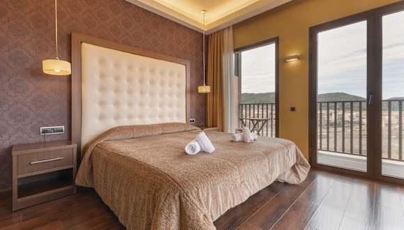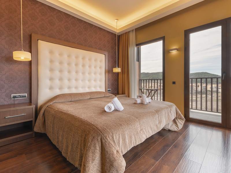 Die Zimmer im Hotel Fuente del Miro sind elegant gestaltet und bieten modernen Komfort. Jedes Zimmer ist klimatisiert und verfügt über einen Flachbild-TV, kostenfreien Internetzugang und viel Tageslicht. Die minimalistische Einrichtung sorgt für eine entspannte Atmosphäre, in der Sie sich wie zu Hause fühlen können.