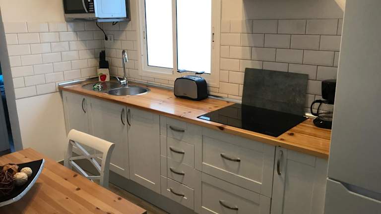 Die Ferienwohnung bietet ein Wohnzimmer mit einem Flachbild-TV sowie eine voll ausgestattete Küche mit einem Kühlschrank. Zudem steht ein Badezimmer zur Verfügung. Handtücher und Bettwäsche werden bereitgestellt.